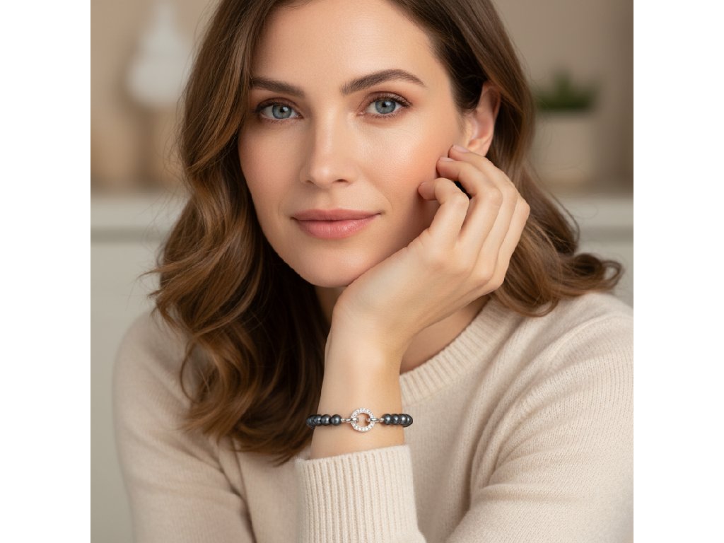 Atraktivní perlový náramek z černých perel se zdobným zapínáním se zirkony