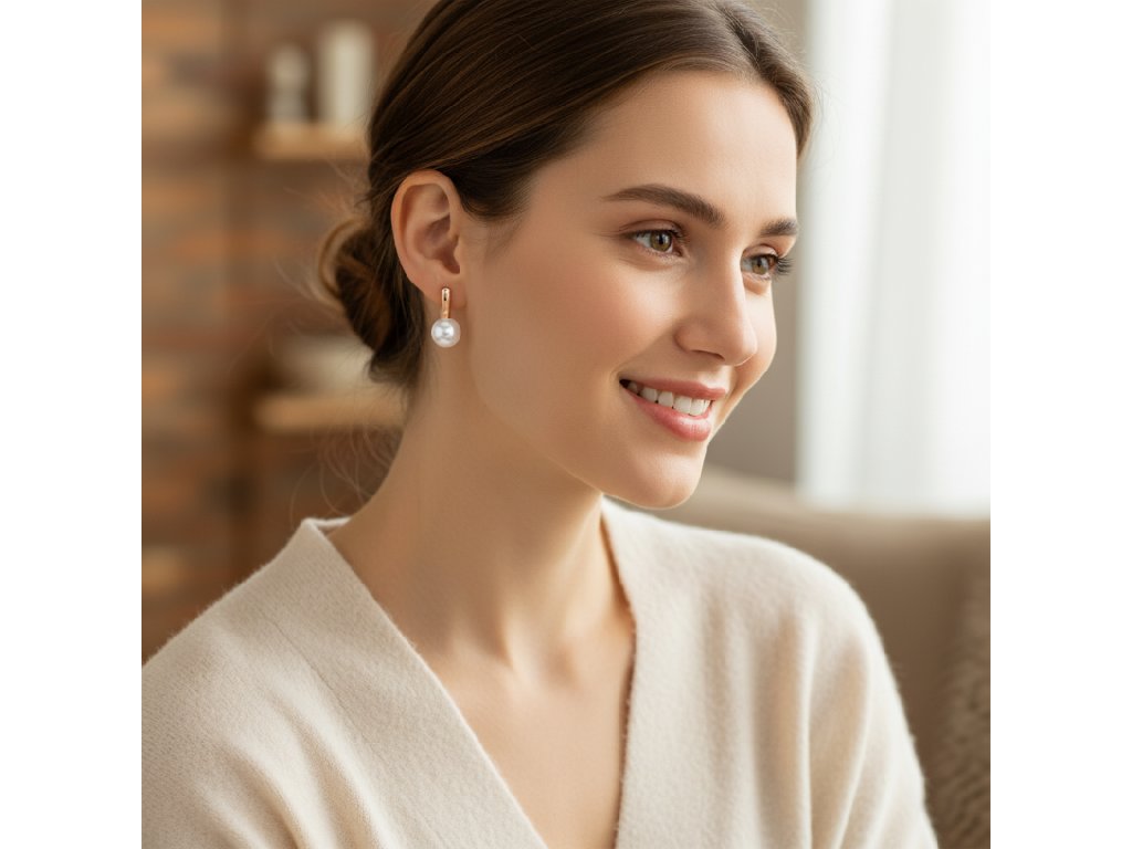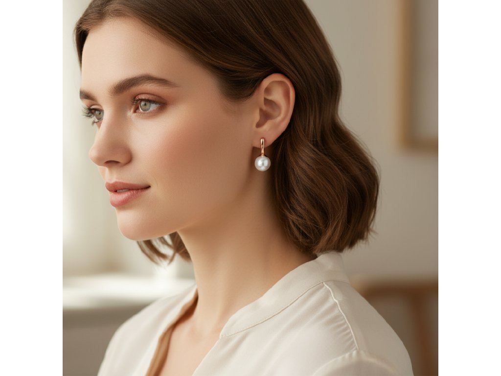 Visací náušnice z růžově pozlaceného stříbra s bílou sladkovodní perlou jsou perfektním spojením elegance a moderního designu. Bílé sladkovodní perly jsou ceněny pro svůj přirozený lesk a jemnou krásu. Tyto náušnice jsou ideálním doplňkem pro formální události i každodenní nošení.