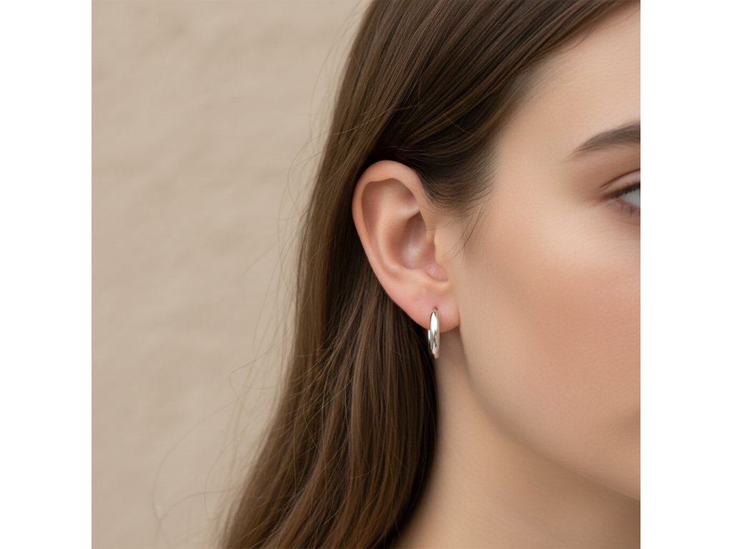S průměrem 1,5 x 10 mm tyto náušnice jemně obepínají lalůček, což z nich činí decentní, ale výrazný doplněk. Jejich lehká váha 0,9 gramu zajišťuje pohodlné nošení po celý den, což je ideální pro ženy, které chtějí nosit náušnice bez jakéhokoliv nepohodlí.
