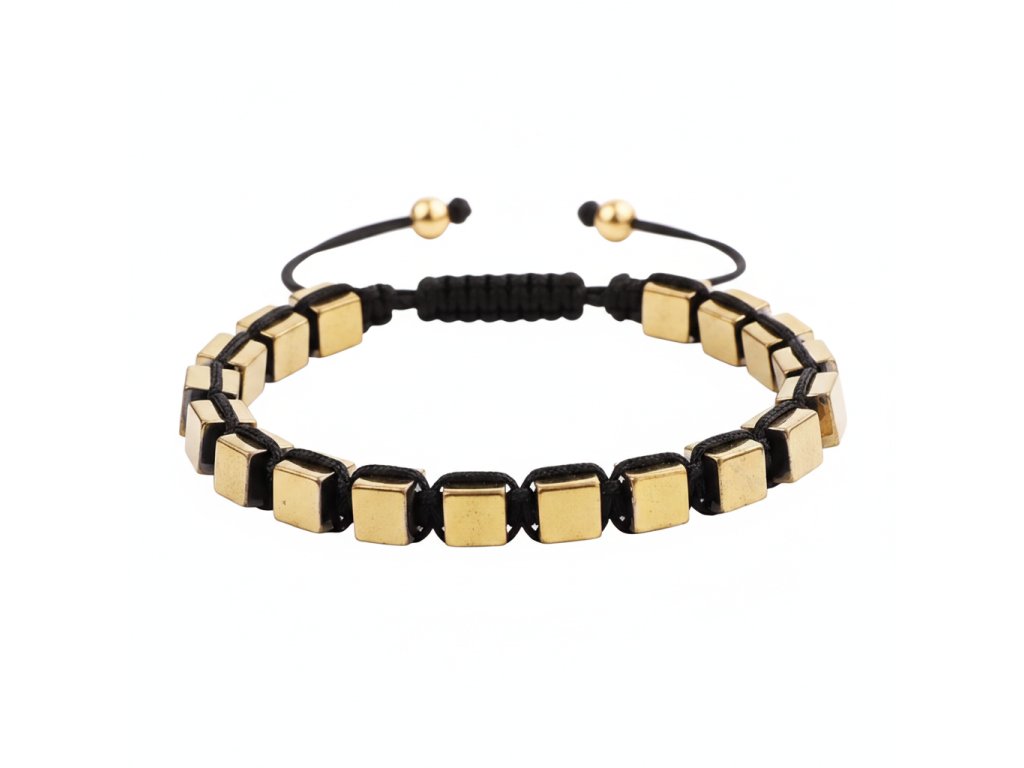 Atraktivní trendy shamballa náramek z pozlacených destiček oceli je skvělým příkladem moderního designu s nádechem luxusu. Pozlacené destičky z oceli přinášejí do vašeho šperkového repertoáru elegantní a sofistikovaný nádech, který zaujme na první pohled. Tento náramek je ideální pro ty, kteří chtějí vyniknout svou elegancí a vkusem.