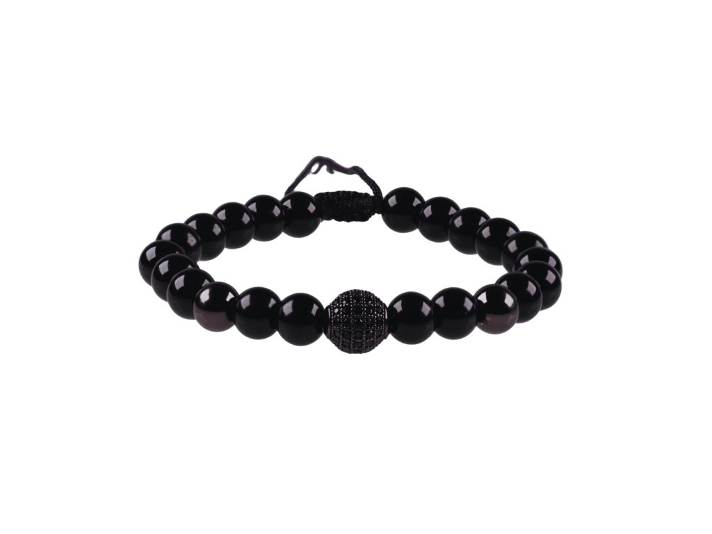 Atraktivní unisex náramek z kuliček lesklého achátu s moderními černými prvky