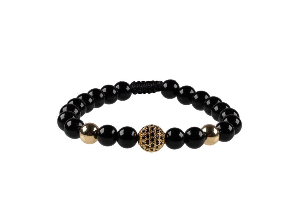 Atraktivní unisex náramek z kuliček lesklého achátu s moderními prvky v barvě zlata