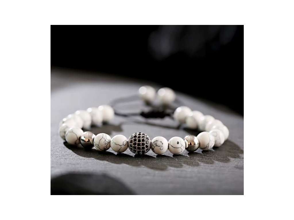 Atraktivní unisex shambala náramek z kuliček magnezitu s moderními prvky v barvě stříbra je stylovým a univerzálním doplňkem, který spojuje přírodní materiály s moderním designem. Kuličky magnezitu, známé svou charakteristickou bílou barvou s jemnými šedými žilkami, dodávají náramku klidný a elegantní vzhled. Moderní prvky v barvě stříbra přidávají náramku sofistikovaný lesk a zdůrazňují jeho atraktivní design. Shambala styl, inspirovaný tibetskými tradicemi, symbolizuje harmonii a rovnováhu, což činí tento náramek nejen módním doplňkem, ale i nositelem hlubšího významu. Díky svému unisex provedení je ideální pro muže i ženy, kteří chtějí vyjádřit svůj osobní styl a zároveň ocenit nadčasovou eleganci. Tento náramek je perfektní volbou pro každodenní nošení i speciální příležitosti.