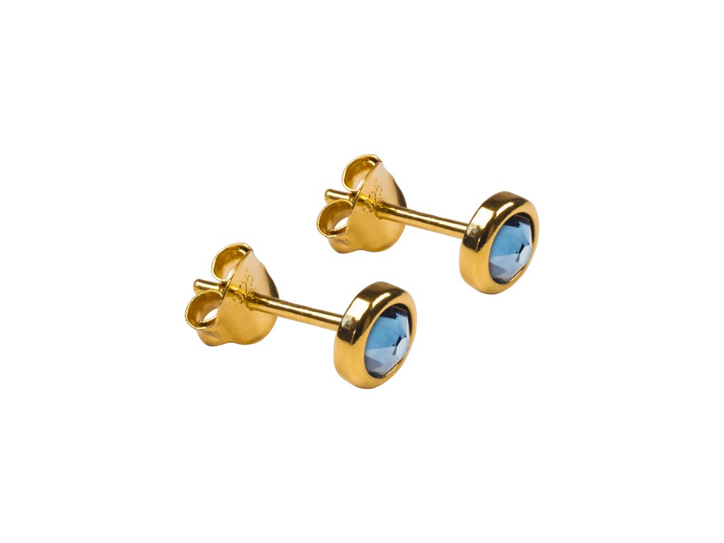 Dámské pozlacené puzetové náušnice z rhodiovaného stříbra s modrým zirkonem
