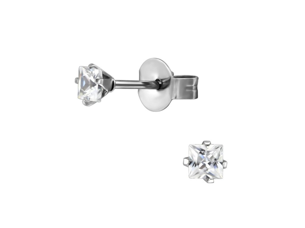 Dámské puzetové náušnice z chirurgické oceli s bílým zirkonem