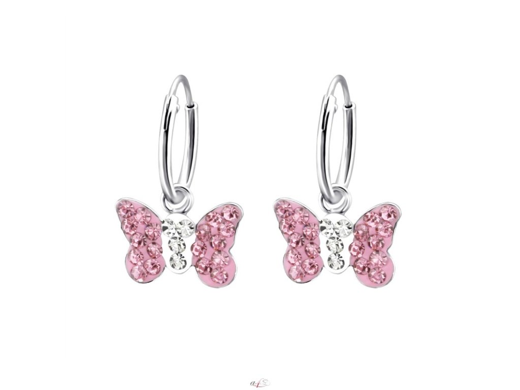Dětské visací náušničky s motýlkem z růžových zirkonů