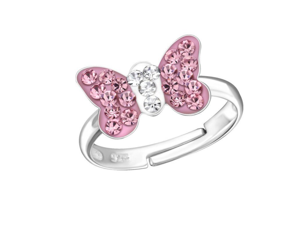 Dětský prstýnek ze stříbra s motýlkem zdobený zirkony