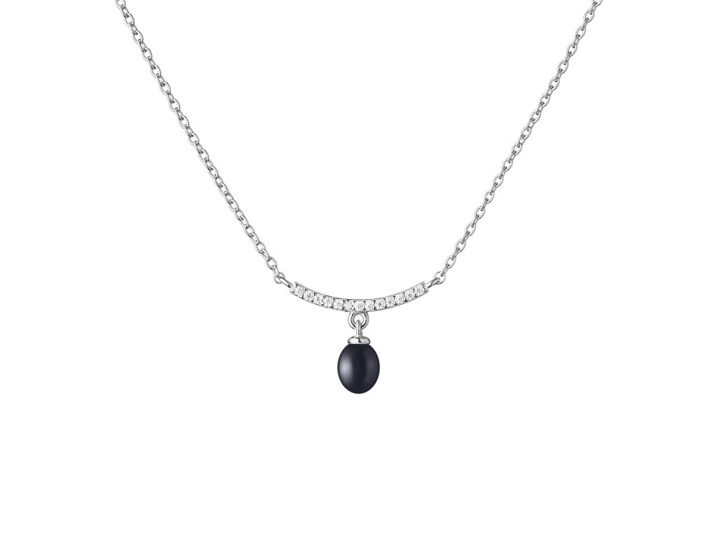Elegantní dámský náhrdelník z rhodiovaného stříbra s černou perlou a zirkony