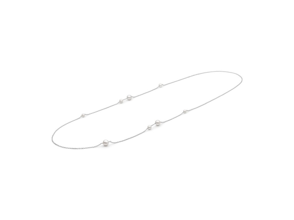 Elegantní dlouhý stříbrný náhrdelník zdobený bílými perlami