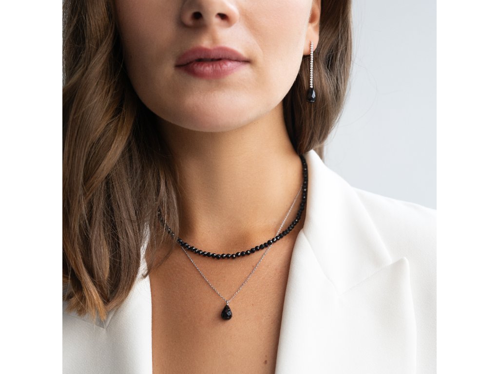 Elegantní dvouřadý náhrdelník z rhodiovaného stříbra s černým onyxem a spinelem