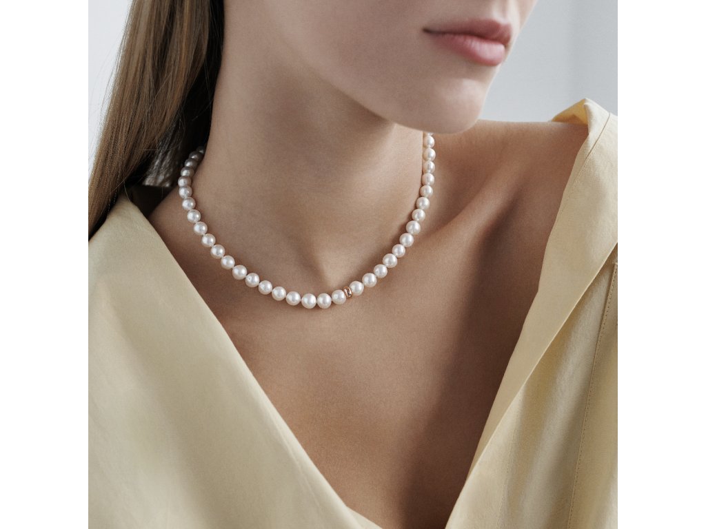 Velmi elegantní a nadčasový perlový náhrdelník s atraktivním korálkem z růžově pozlaceného zlata je noblesním doplňkem, který dokonale podtrhne váš šarm a přirozenou eleganci. Jemné přírodní perly o velikosti 6,5–7,5 mm se nádherně lesknou, což dodává náhrdelníku jemný a sofistikovaný vzhled. Kombinace perel s pozlaceným růžovým zlatem vytváří harmonickou souhru luxusu a sofistikovanosti, která je ideální pro ty, kteří chtějí vyniknout a zároveň si zachovat klasický styl.