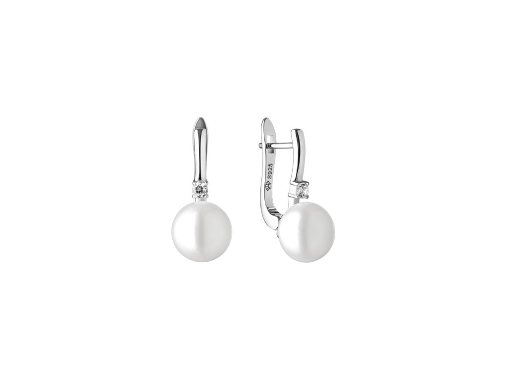 Elegantní visací náušnice z rhodiovaného stříbra s pravou bílou perlou