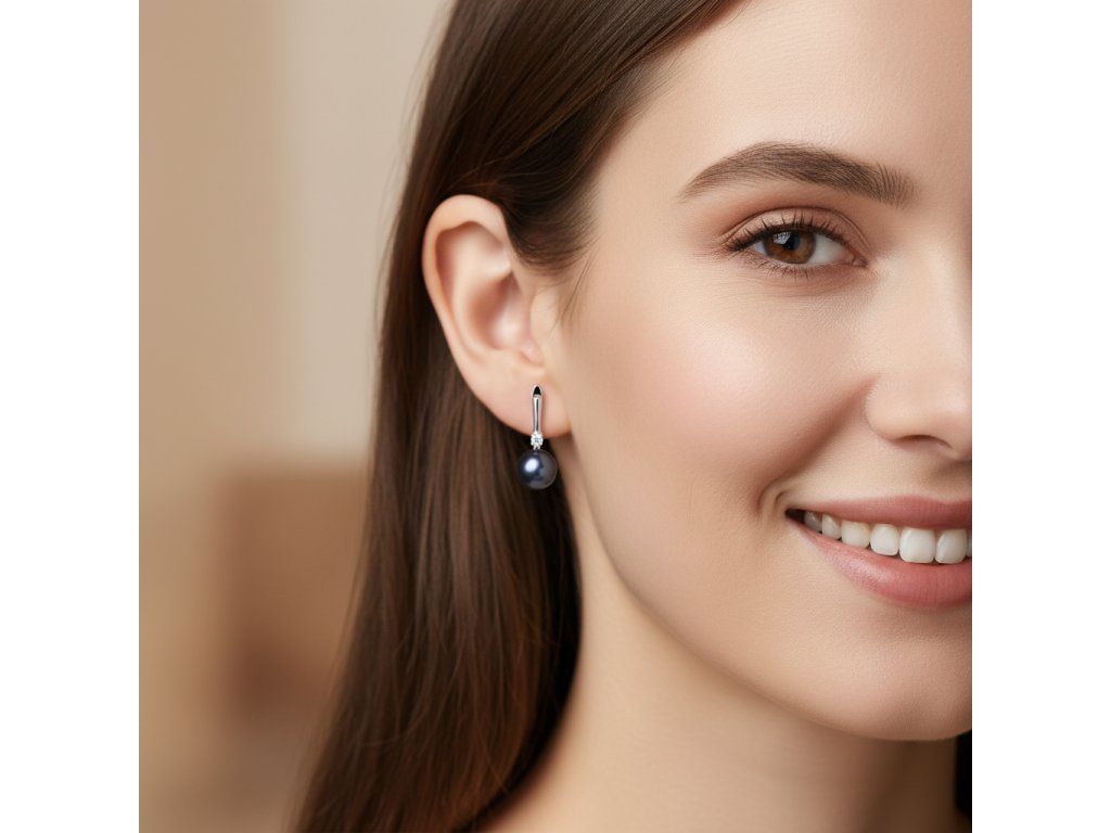 Tyto visací náušnice s pravou černou perlou představují dokonalou kombinaci elegance a sofistikovanosti. Černé perly, známé svou vzácností a tajemnou krásou, dodávají šperku nevšední charakter. Jejich hluboký, temný lesk vytváří nádherný kontrast s lesklým rhodiovaným stříbrem, což činí tento šperk skutečně výjimečným.