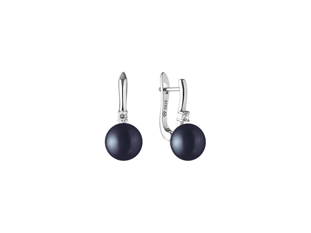 Elegantní visací náušnice z rhodiovaného stříbra s pravou černou perlou
