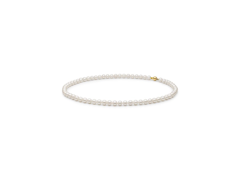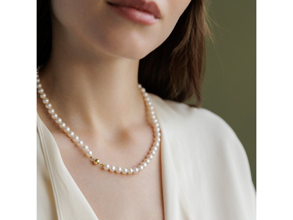 Exkluzivní perlový náhrdelník z bílých perel s bezpečnostní kuličkou ze 14kt zlata