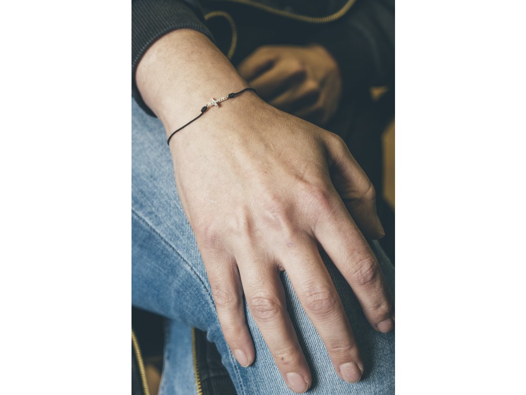 Kabbalah náramek s nastavitelnou nylonovou šňůrkou a přívěskem křížku z rhodiovaného stříbra o velikosti 13 x 8 mm, který je osázen zářivými zirkony. Kombinace decentního třpytu a moderního designu dodává šperku nadčasovou eleganci, zatímco pohodlné zapínání se přizpůsobí každému zápěstí. Tento náramek je dokonalým spojením jemné symboliky a stylového doplňku pro každý den.
