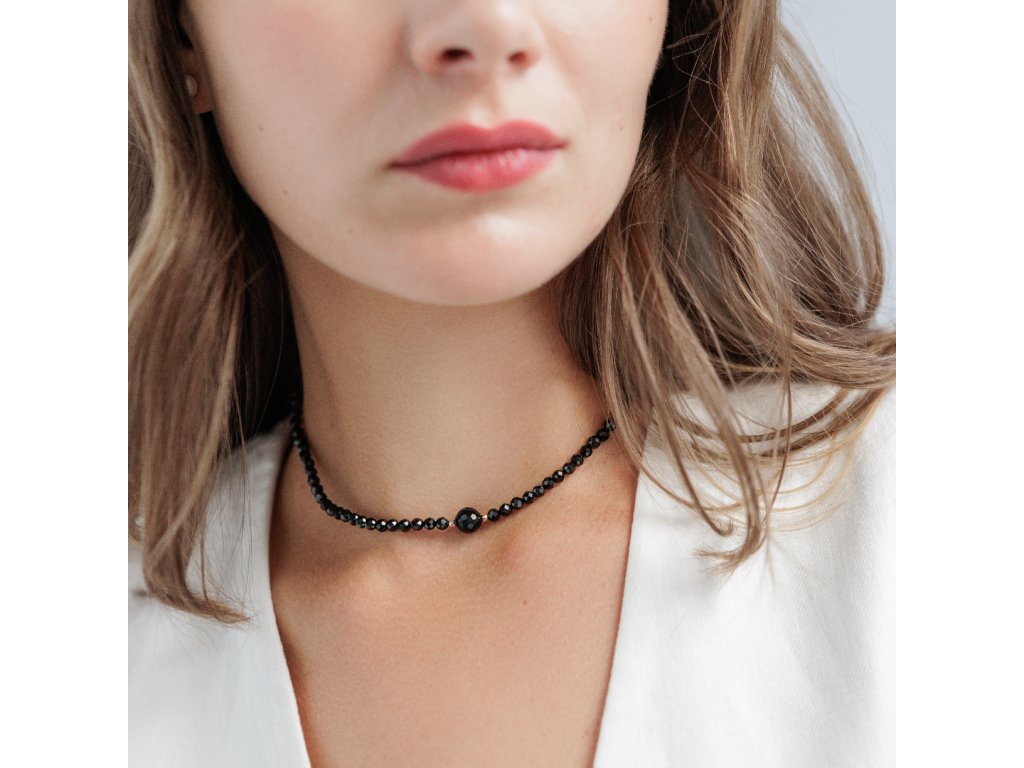 Luxusní náhrdelník z kuliček onyxu v růžovém zlatě s centrálním prvkem