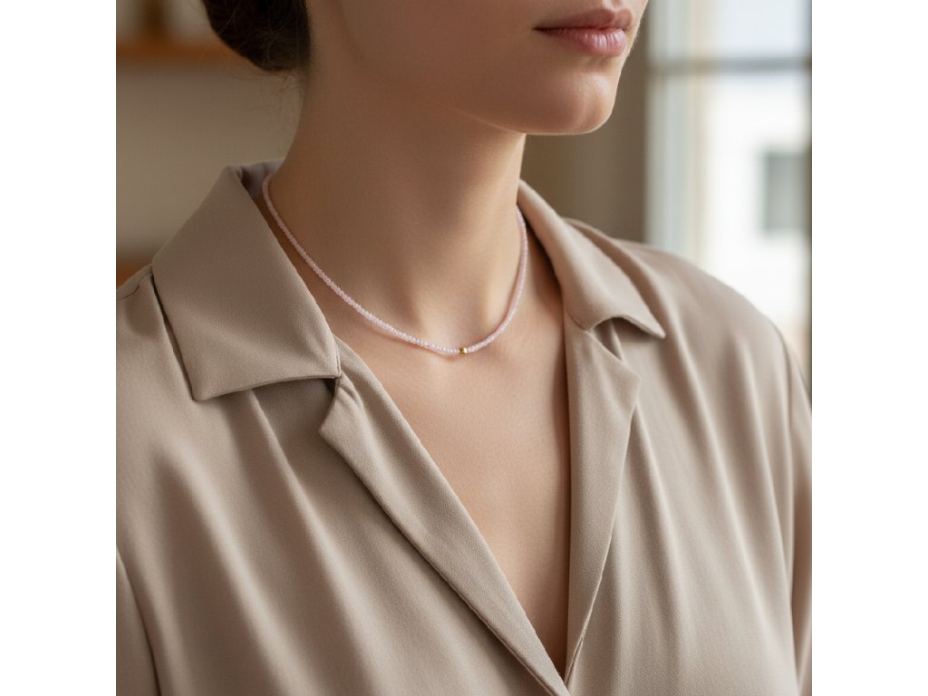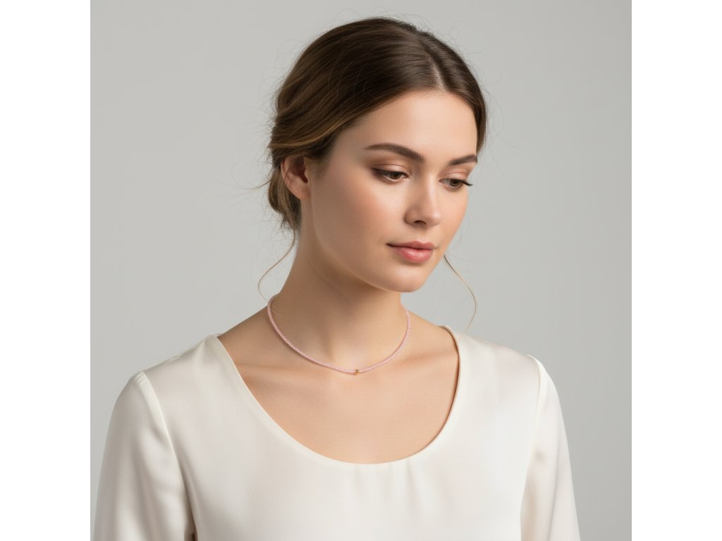 Luxusní náhrdelník z růženínu je nádherným příkladem šperku, který kombinuje přírodní krásu s elegantním designem. Růženínové kuličky o průměru 3-4mm jsou jemně broušené, což zajišťuje, že každý kousek kamene odráží světlo a vytváří jemný, romantický lesk. Růženín je známý jako kámen lásky a je často ceněn pro své uklidňující vlastnosti, což z něj činí ideální volbu pro ty, kteří hledají harmonii a klid.