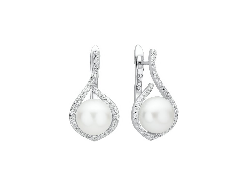 Luxusní náušnice s výraznou bílou perlou a zirkony