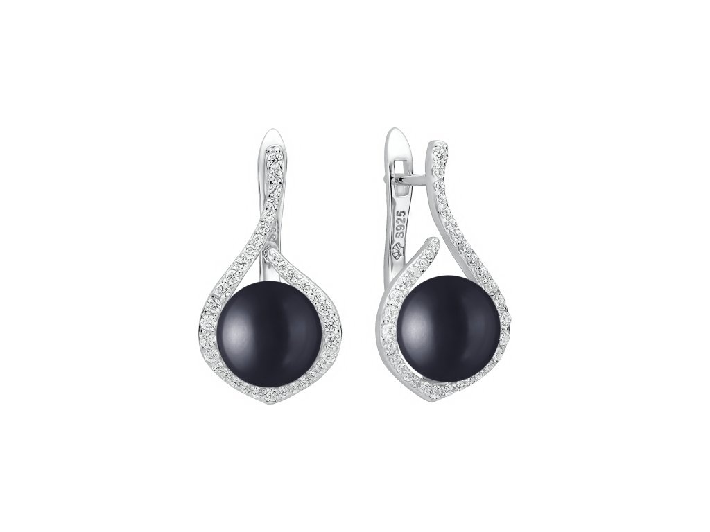 Luxusní náušnice s výraznou černou perlou a zirkony