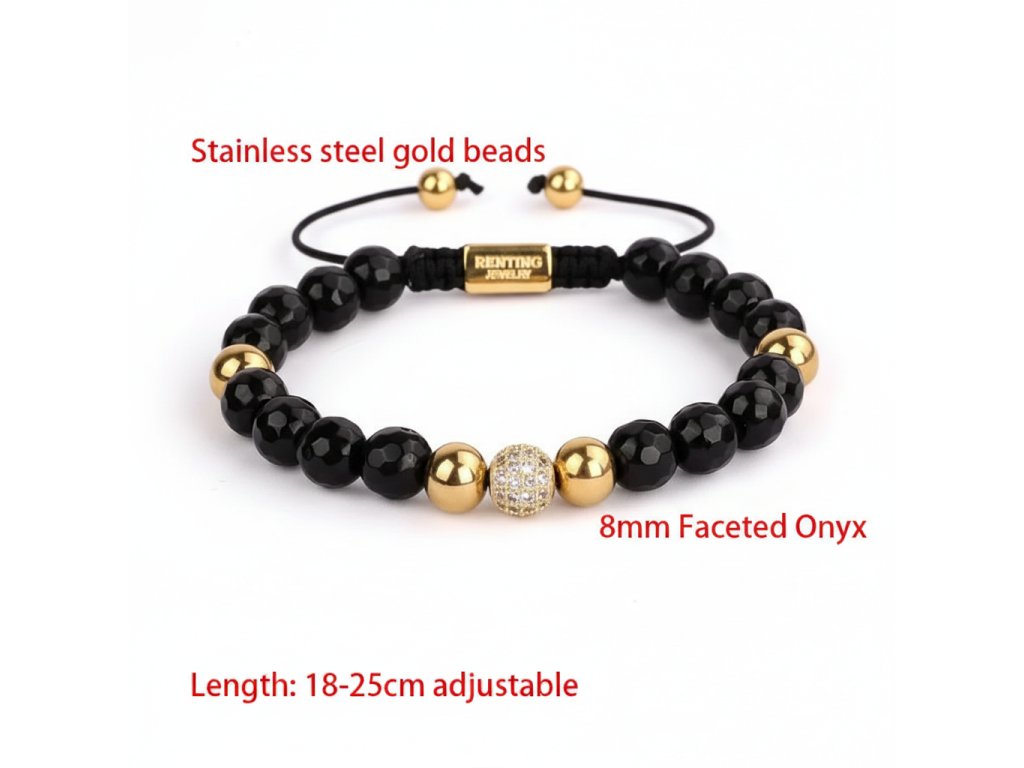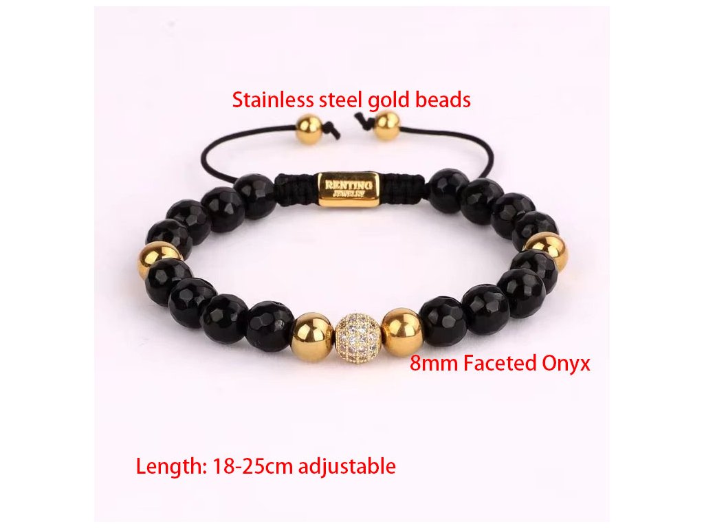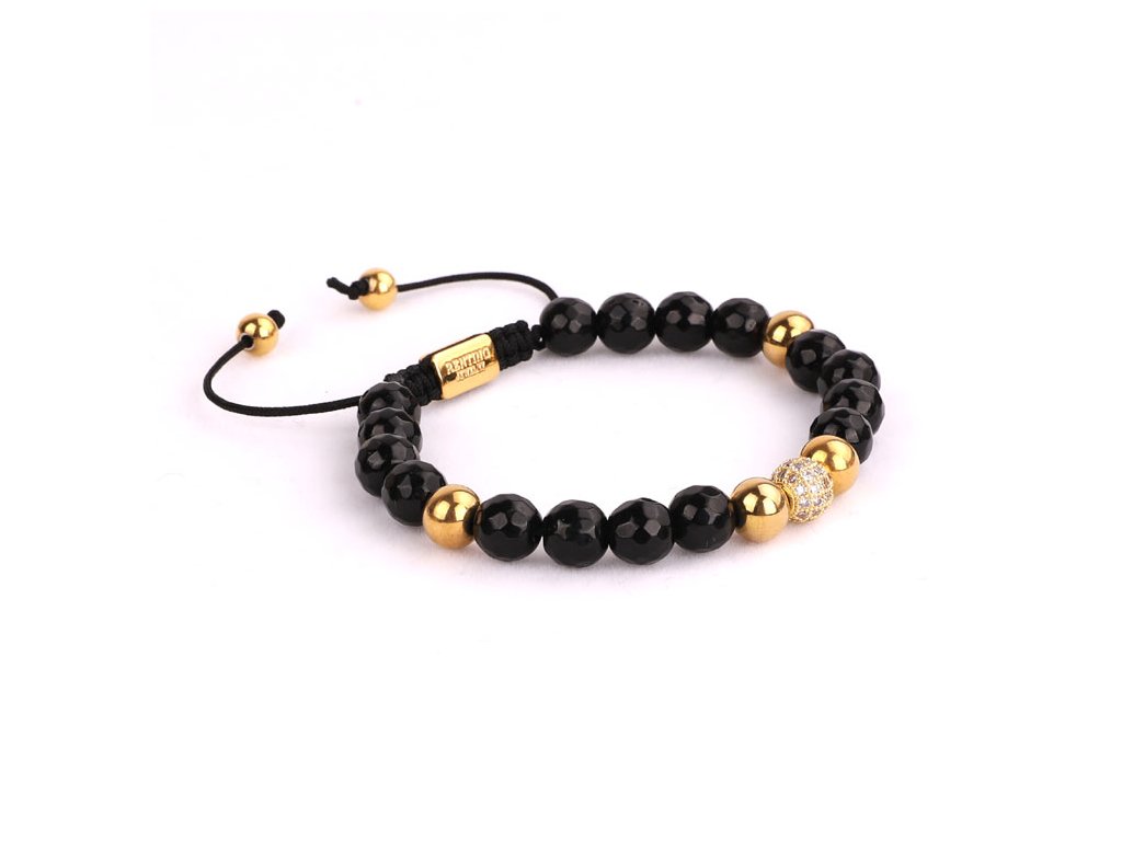 Luxusní trendy náramek z černého onyxu se zlatými doplňky