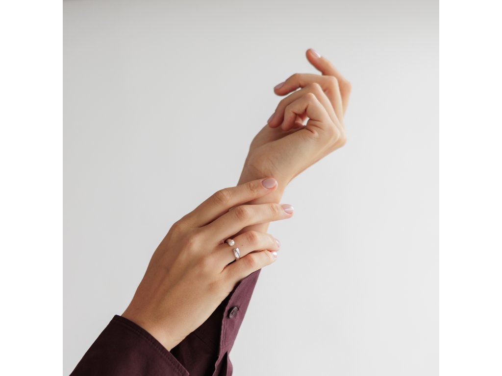 Moderní minimalistický prsten z rhodiovaného stříbra je dokonalým příkladem elegance a jednoduchosti, který zaujme svou čistou linií a sofistikovaným vzhledem. Jeho otevřený tvar dodává prstenu moderní nádech a umožňuje snadné přizpůsobení na prstu. Na jedné straně prstenu je originálně vsazena kvalitní pravá bílá sladkovodní perla, která prstenu dodává jemný nádech luxusu a vytváří elegantní kontrast s chladivým leskem stříbra.