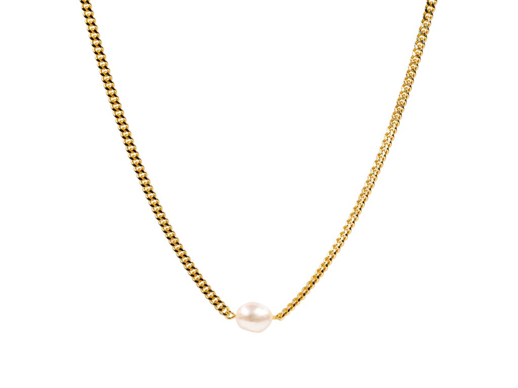 Moderní dámský pozlacený náhrdelník s pravou bílou perlou
