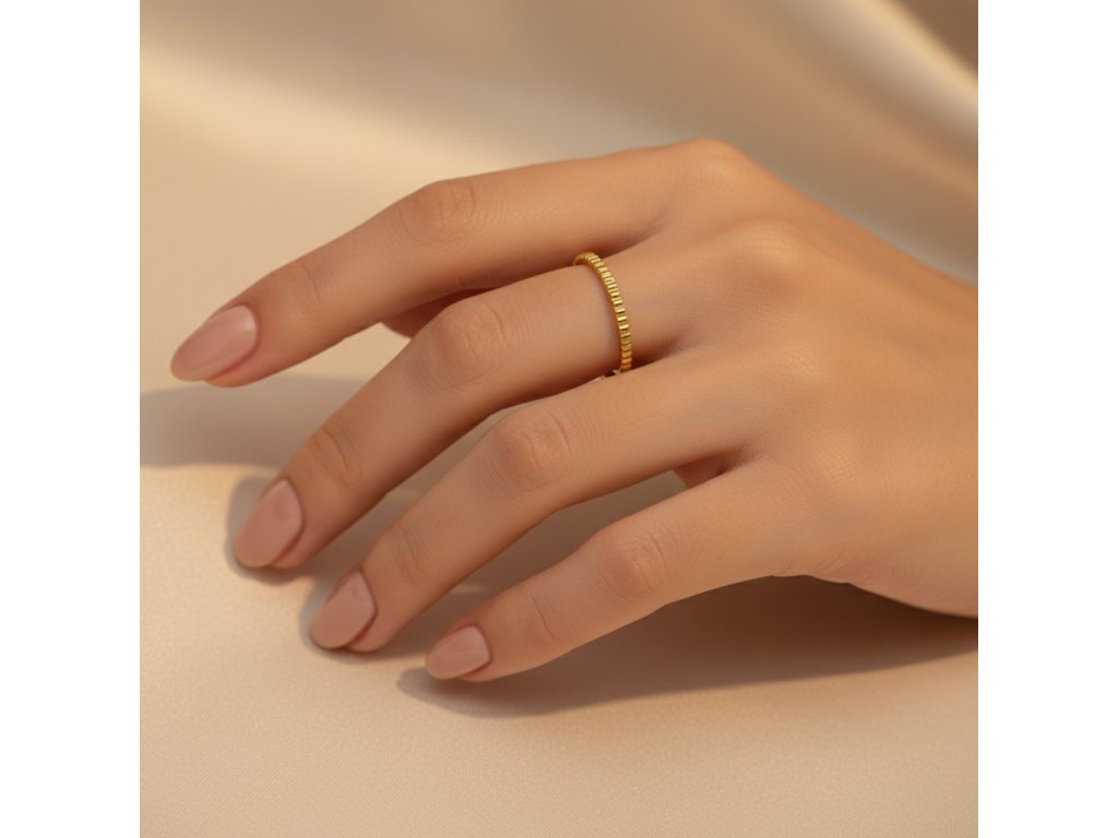 Tento minimalistický prsten je snadno kombinovatelný s jinými šperky, ať už se jedná o zlaté, stříbrné či ozdobné kousky, což umožňuje jeho všestranné využití v rámci různých stylových provedení. Díky svému jemnému, ale přitom modernímu vzhledu, je tento prsten skvělou volbou pro každého, kdo touží po jednoduchém, ale zároveň výrazném doplňku, který podtrhne jejich osobní styl.