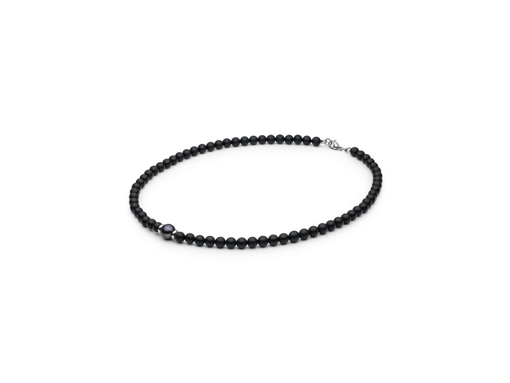 Moderní onyxový set šperků s pravou černou perlou a stříbrnými prvky