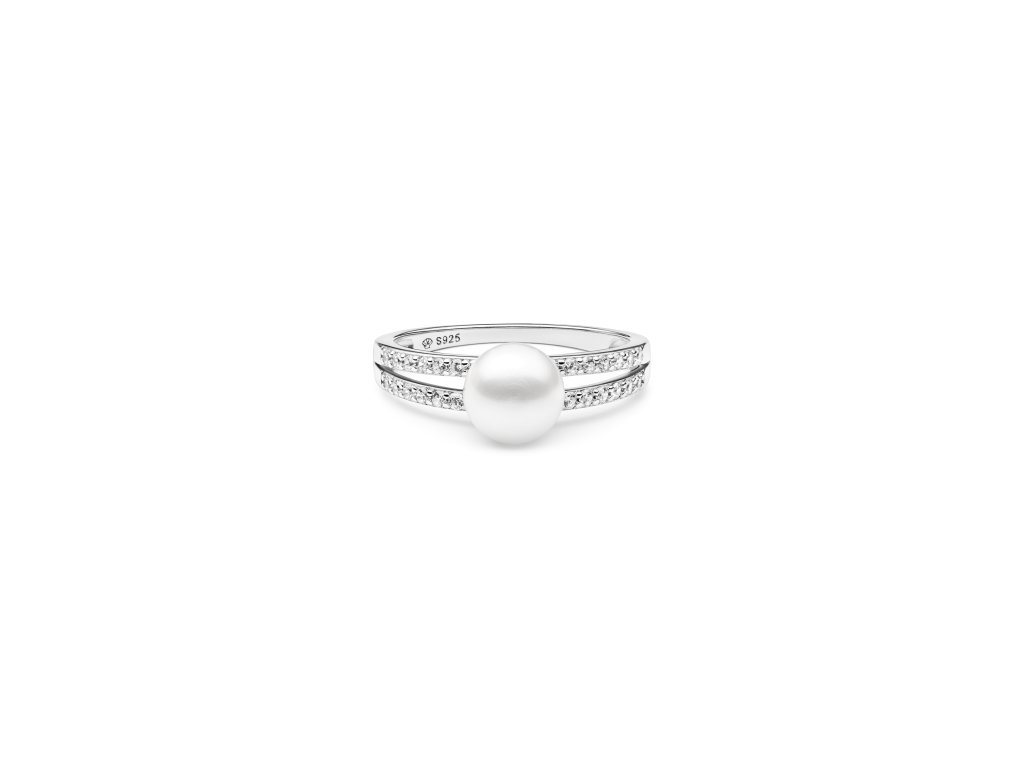 Moderní prsten z kvalitního rhodiovaného stříbra s pravou bílou sladkovodní perlou
