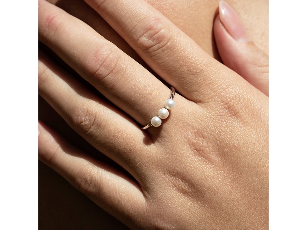 Módní prsten z rhodiovaného stříbra s třemi pravými černými sladkovodními perličkami o velikosti 4-4,5 mm nabízí jemný a elegantní vzhled, který dokonale doplní každý outfit. S přibližnou váhou 1,68 g je tento prsten lehký a pohodlný na nošení, což ho činí ideálním pro každodenní nošení i speciální příležitosti. Prsten kombinuje moderní design s klasickou krásou perliček, což z něj činí perfektní doplněk pro ženy, které chtějí do svého šatníku přidat nádech luxusu a elegance. Tento kousek je nejen stylovým šperkem, ale také výrazem sofistikovaného vkusu a osobního stylu.