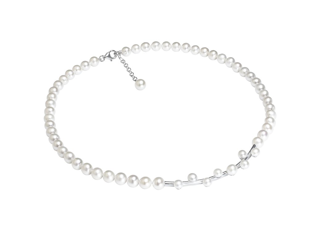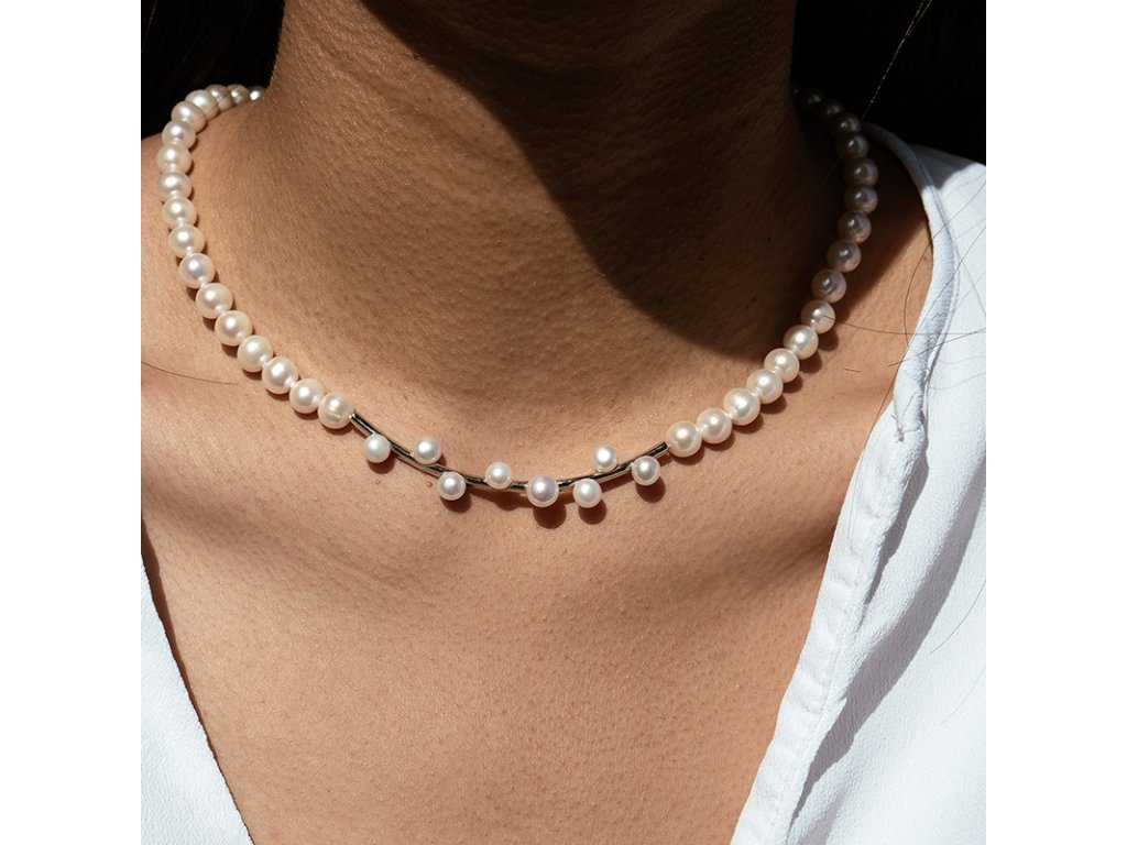 Nadčasový náhrdelník z rhodiovaného stříbra s pravými bílými perlami