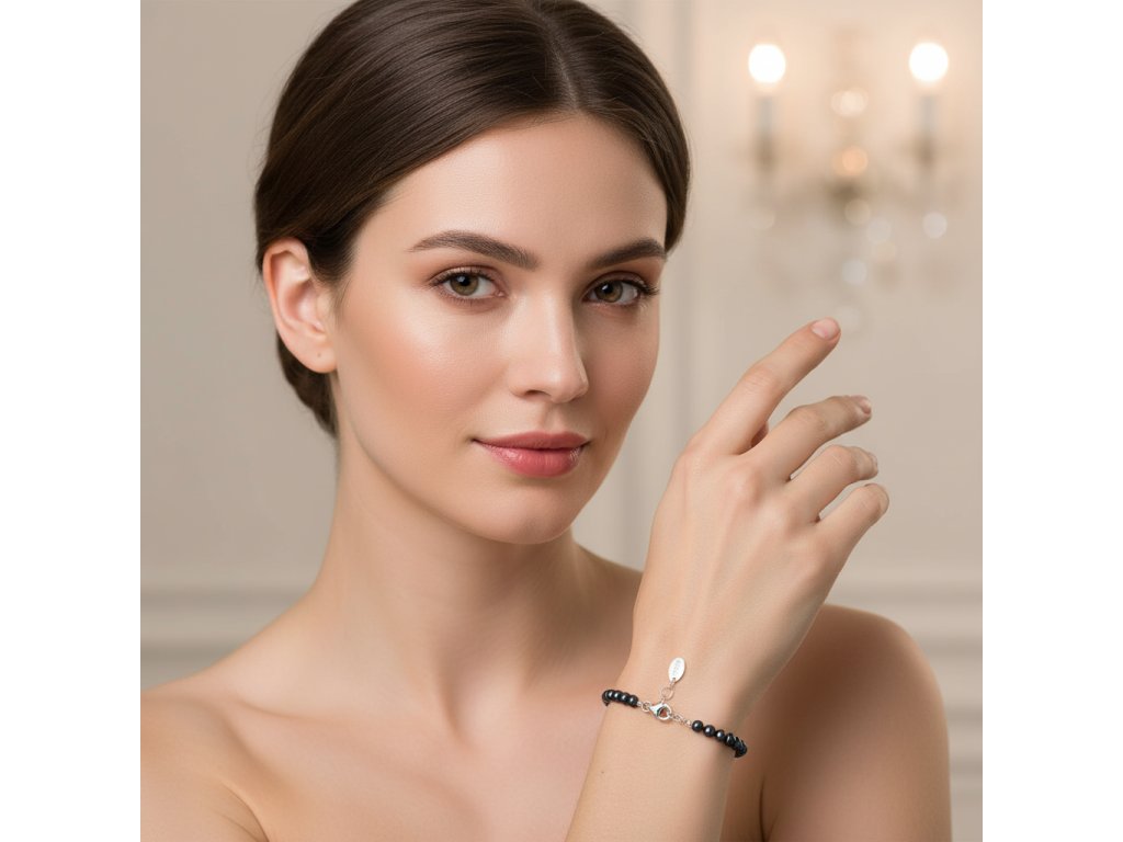 Nadčasový náramek z jemných černých perel o velikosti 4,5 - 5 mm je elegantním doplňkem, který vyzařuje luxus a sofistikovanost. Černé perly, známé svým tajemným a výrazným vzhledem, dodávají náramku jedinečný charakter, který je ideální pro večerní události i formální příležitosti.