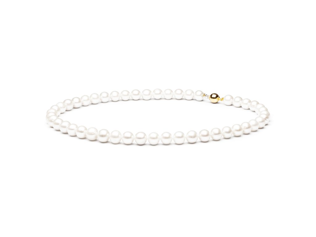 Náhrdelník z bílých sladkovodních perel s ozdobnou kuličkou ze 14kt žlutého zlata