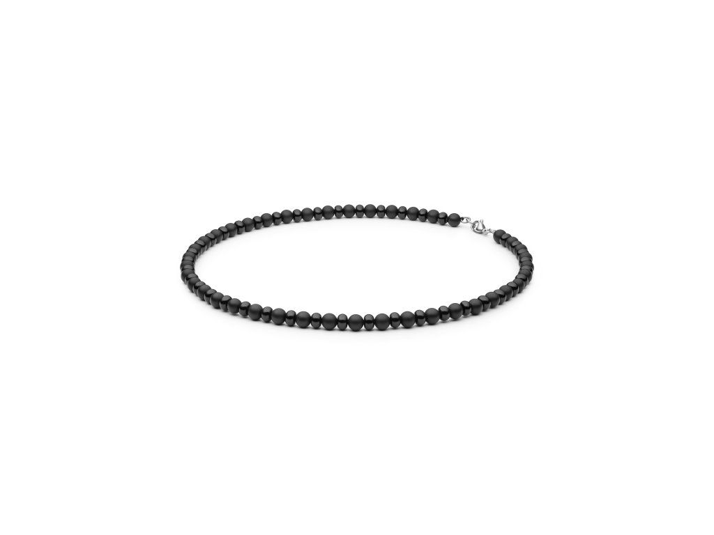 Náhrdelník z matného a lesklého onyxu přináší unikátní příběh o mistrném zpracování přírodního kamene, které umocňuje jeho krásu a sílu. Onyxové kuličky jsou pečlivě vybírány pro svou kvalitu a estetické vlastnosti, což zajišťuje, že každý kus náhrdelníku dokonale ladí s dalším, čímž vzniká harmonický a oku lahodící celek. Tento elegantní šperk propojuje klasické a moderní prvky takovým způsobem, že se stává nadčasovým doplňkem vaší šperkové sbírky.