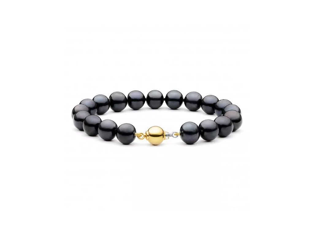 Náramek z černých sladkovodních perel s bezpečnostní kuličkou ze 14kt žlutého zlata