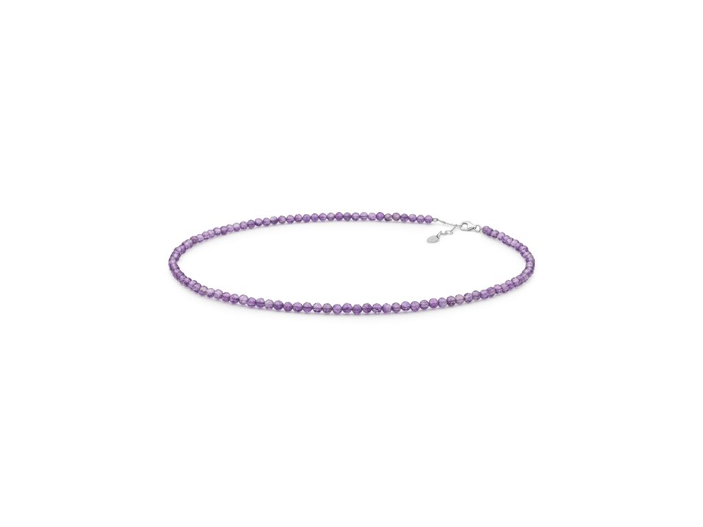 Originální dámský náhrdelník z broušených kuliček ametystu s rhodiovaným stříbrem