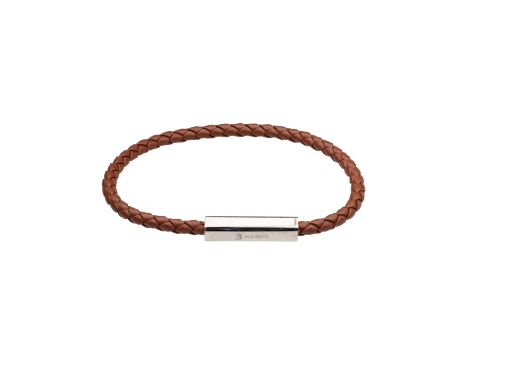 Pánský hnědý pletený kožený náramek s dekorativním hranolem z oceli