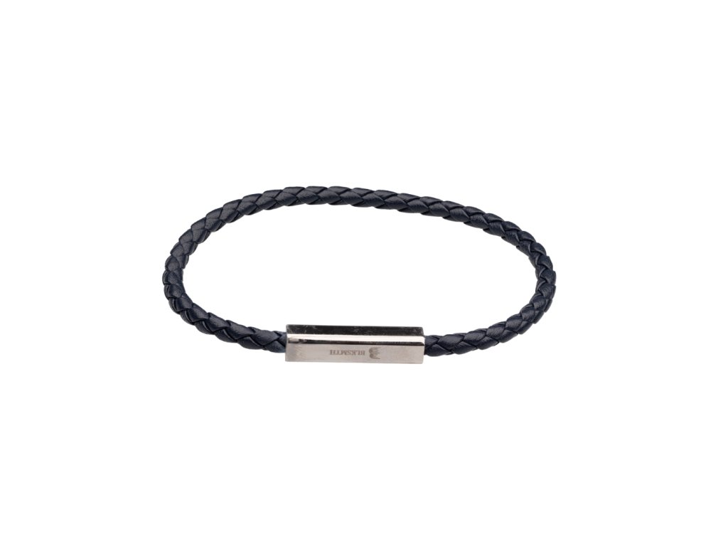 Pánský temně modrý pletený kožený náramek s dekorativním hranolem z oceli