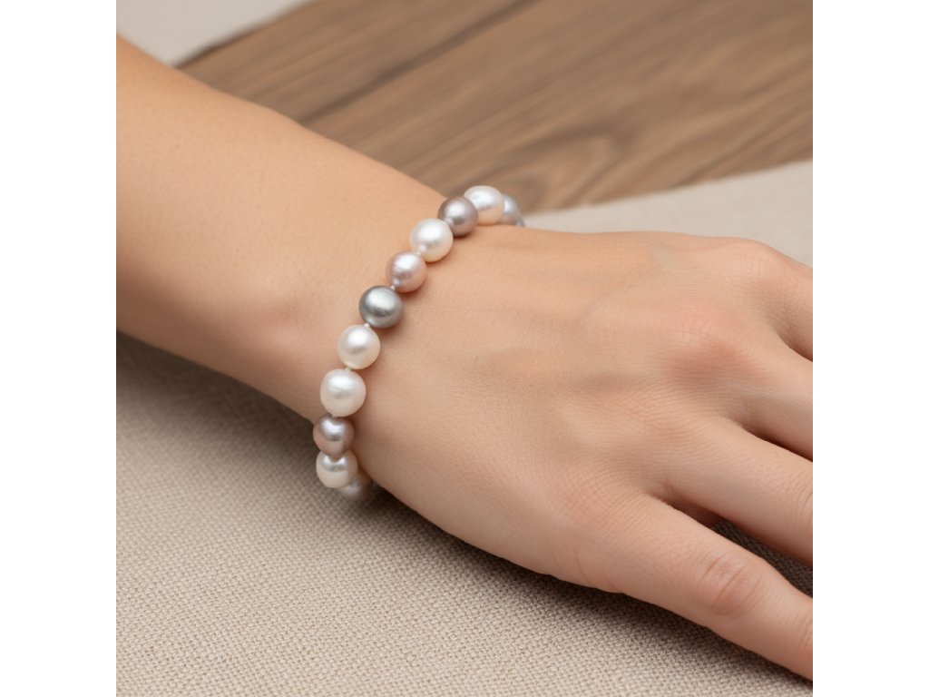 Tento perlový náramek z pravých certifikovaných barokních perel je skutečně unikátním kouskem, který kombinuje přírodní krásu perel s moderními prvky designu. Barokní perly o velikosti 10 - 11 mm jsou známé svým nepravidelným tvarem, který je činí jedinečnými. Multicolor odstíny v šedorůžové barvě dodávají náramku neobyčejný vzhled a umožňují, aby perly hrály různými barvami v závislosti na úhlu dopadu světla.