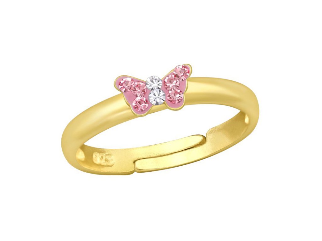 Pozlacený dětský prstýnek s motýlkem zdobený zirkony