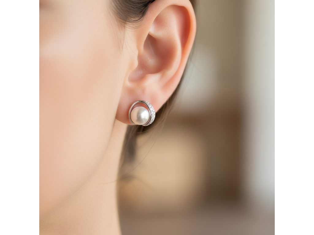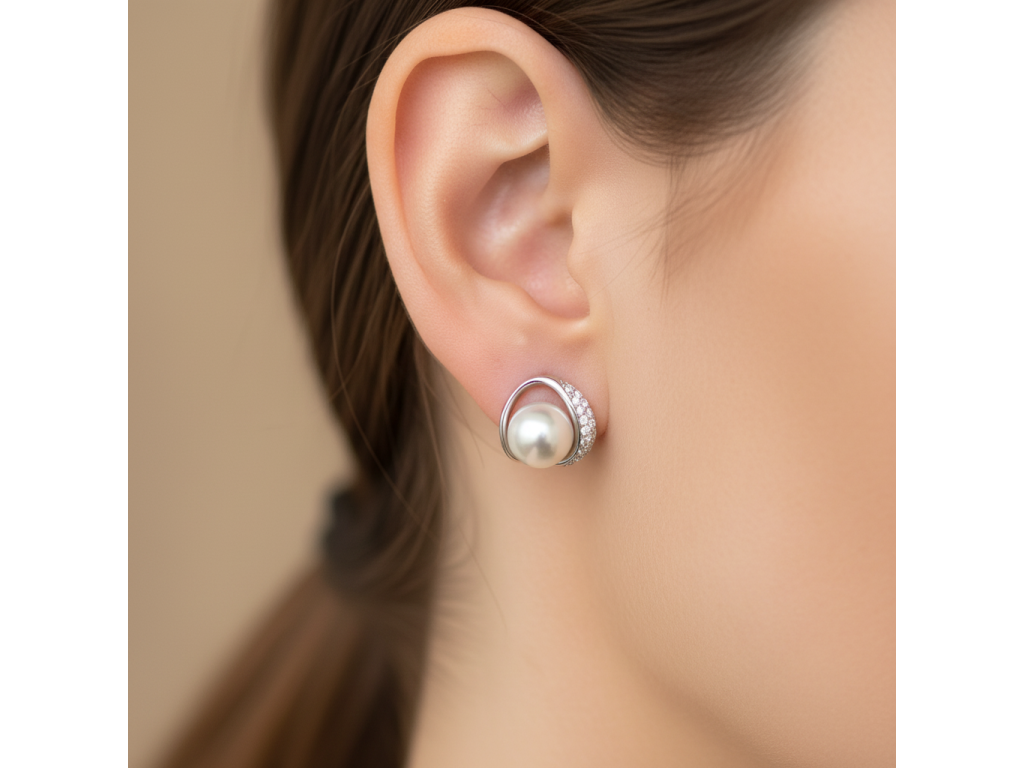 Náušnice jsou navíc zdobeny precizně umístěnými třpytivými zirkony, které perfektně zdůrazňují čistotu a zář perl, vytvářejí přitom dokonalý soulad mezi subtilní elegancí a oživujícím třpytem. Tyto detaily činí náušnice ideální volbou pro různé příležitosti - ať už jde o formální večírek, svatbu nebo neformální setkání.