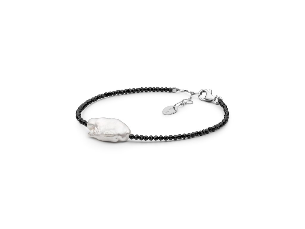 Tento trendy náramek ze spinelových kamenů s dominantní Biwa perlou je perfektní volbou pro milovníky elegantních a výrazných šperků. Spinelové kameny v náramku přinášejí zářivý černý lesk, který dodává moderní a sofistikovaný vzhled. Tyto kameny jsou oblíbené pro svou tvrdost a intenzivní barvu, což zajišťuje, že náramek bude dlouho vypadat jako nový.